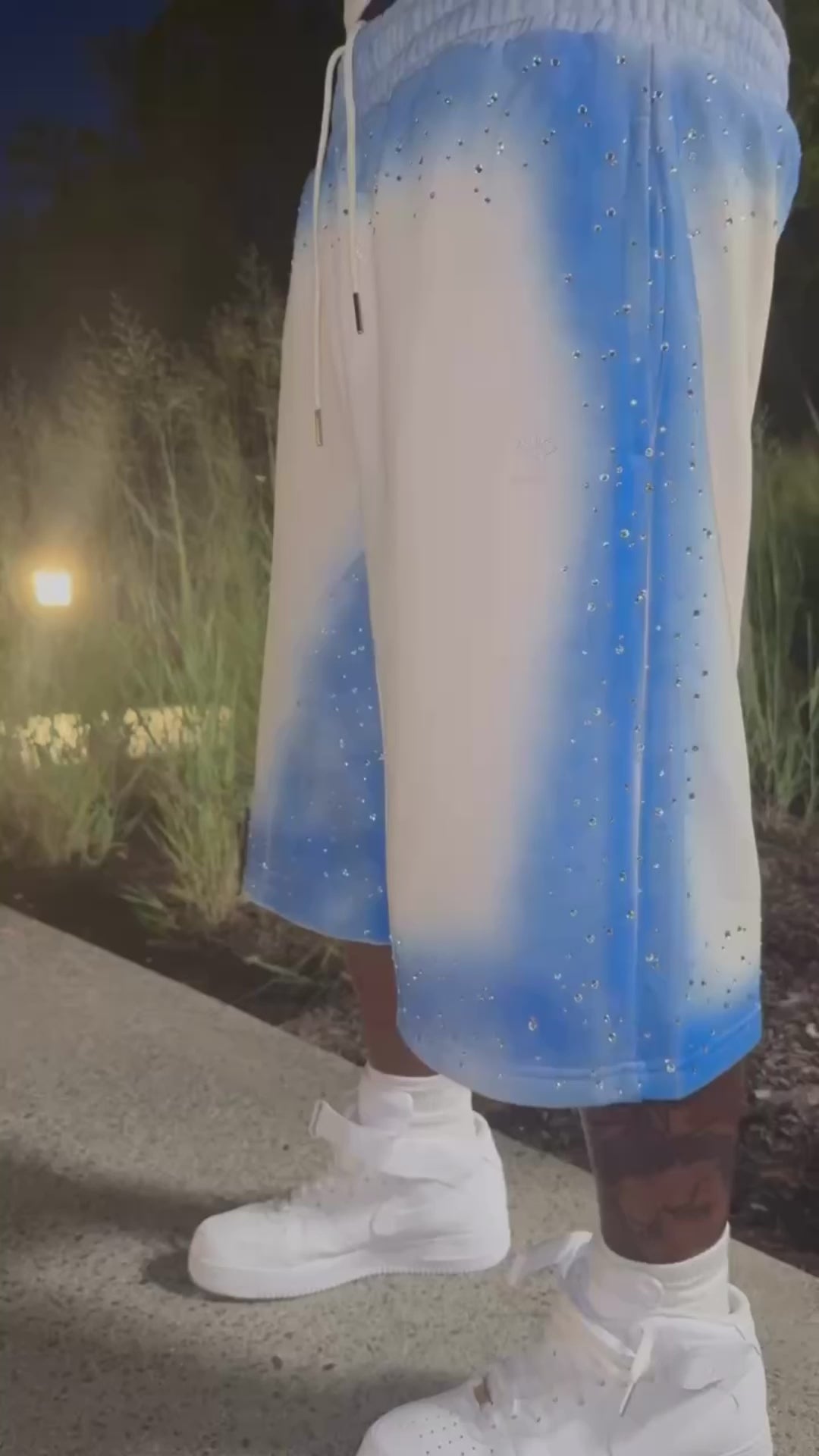A statement piece in every sense. These oversized mesh shorts blend a bold gradient fade with hand-placed rhinestone accents to create a shimmer that moves with you. Crafted for standout comfort and casual flex, each colorway feels like a summer night — cool, vibrant, and full of energy.