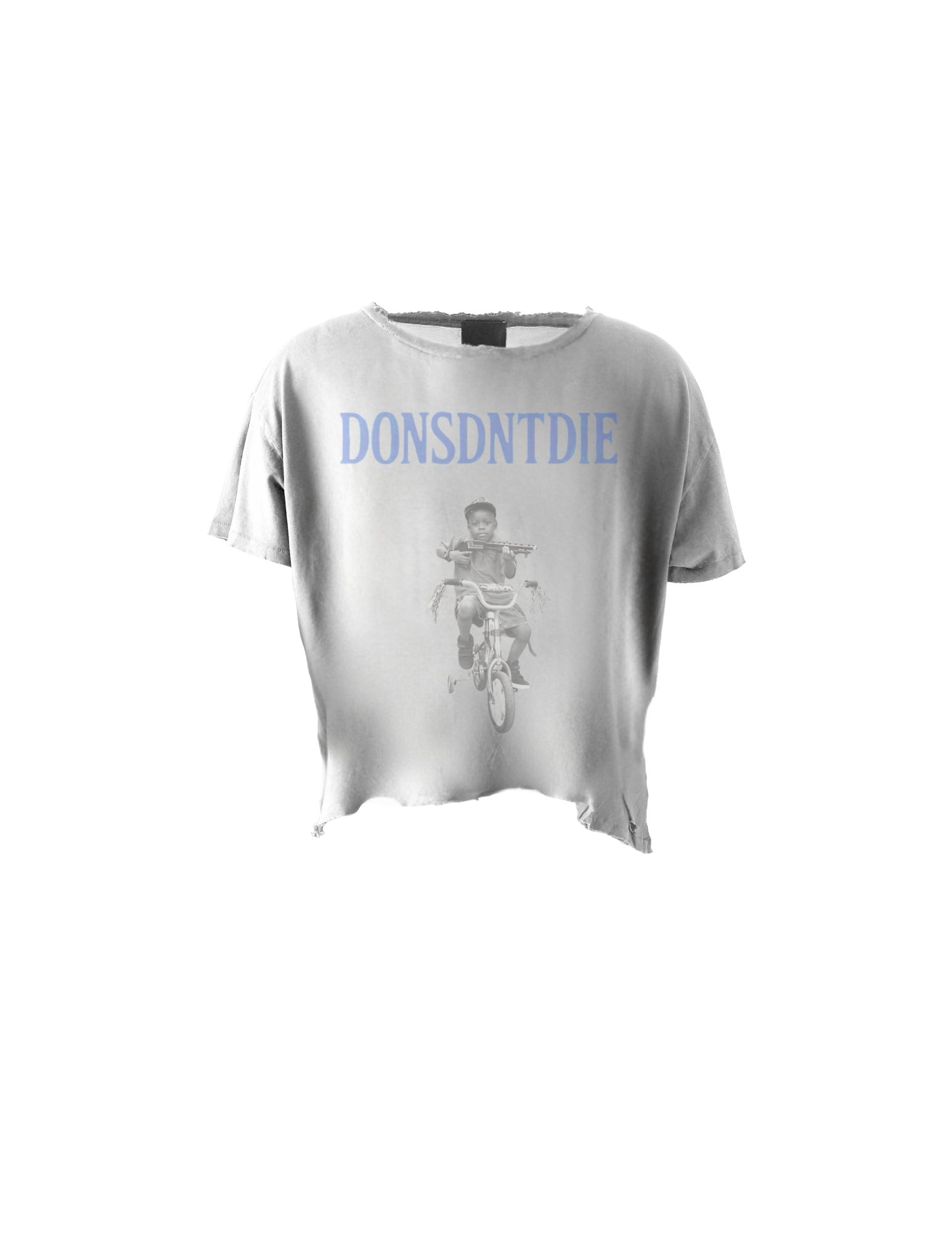 The First Ride Tee reminds us that from the moment we enter the world, we’re built different. Even in innocence, we were already learning how to move through the world with armor. The raw edges and distressed finish nod to the fight we face growing up — but Dons don’t fold. Dons don’t quit. Dons Don’t Die.